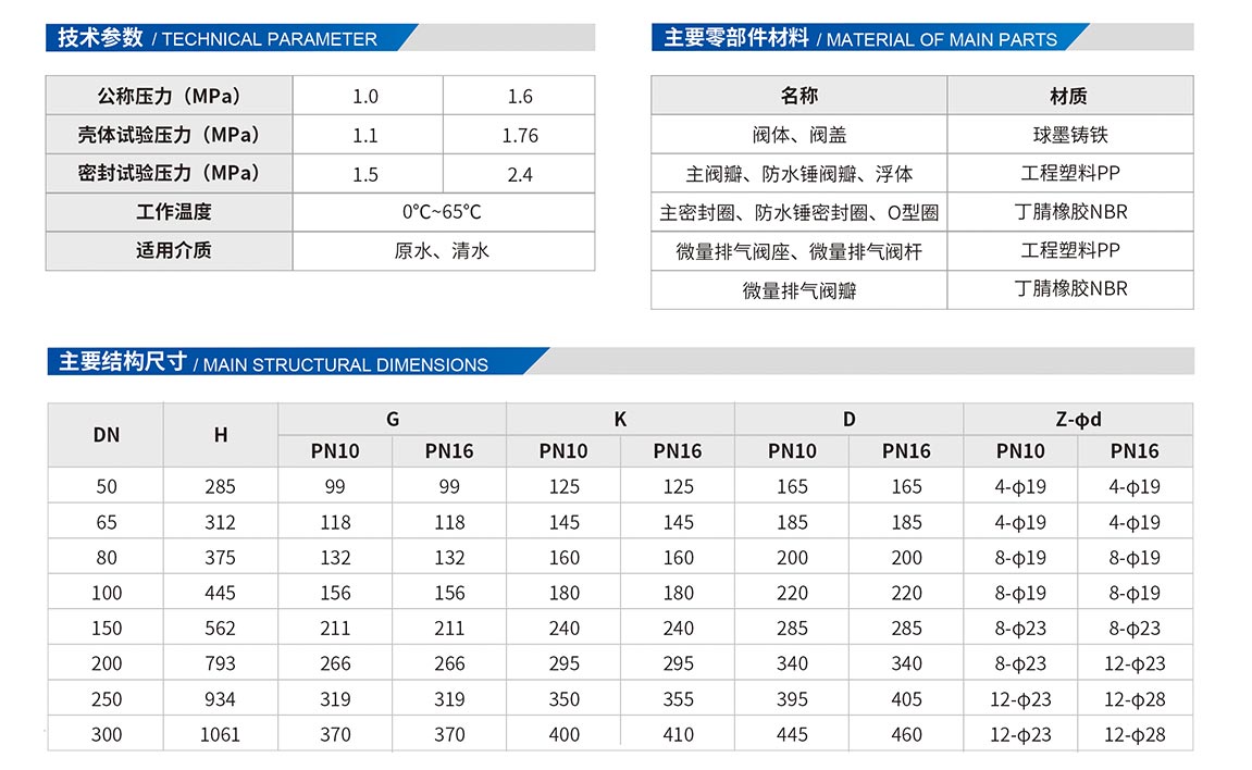 2、工程塑料閥瓣與浮球比重好性能可靠,即使冬季閥內(nèi)結(jié)冰,當(dāng)冰化開后可繼續(xù)使用,不會(huì)出現(xiàn)浮球被冰凍失效的問題。
