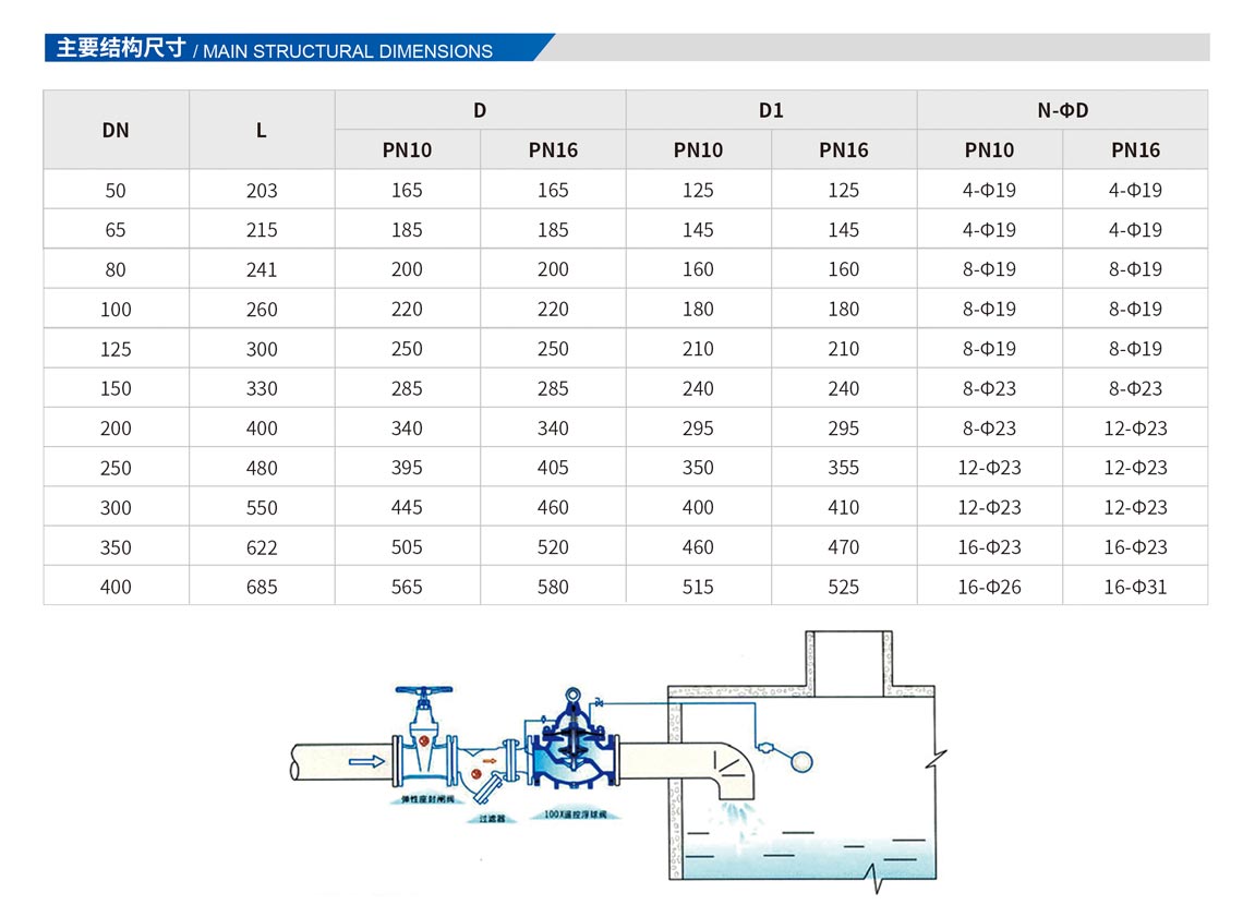 該閥門能有效地控制水塔或水箱液面,適時(shí)切斷或打開(kāi)閥芯輸入水充或阻止水流外泄。液位控制準(zhǔn),水位不受壓力波動(dòng)干擾,開(kāi)團(tuán)緊密不漏水,浮球靈活,維護(hù)保養(yǎng)簡(jiǎn)單(控制球閥可與主閥分離安裝),適用于工礦,企業(yè),高層建筑中的水箱,水池,水塔的自動(dòng)供水系統(tǒng)。