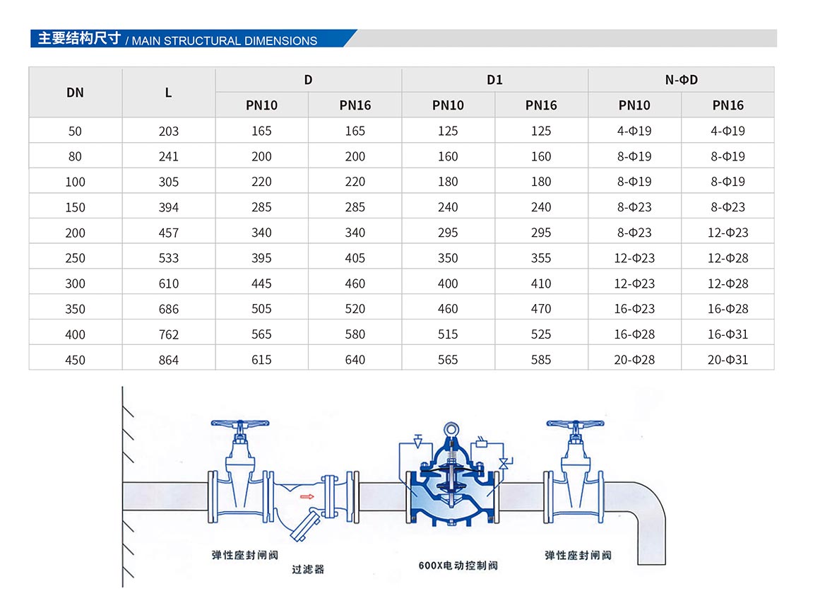 隔膜式∶DN50~DN500