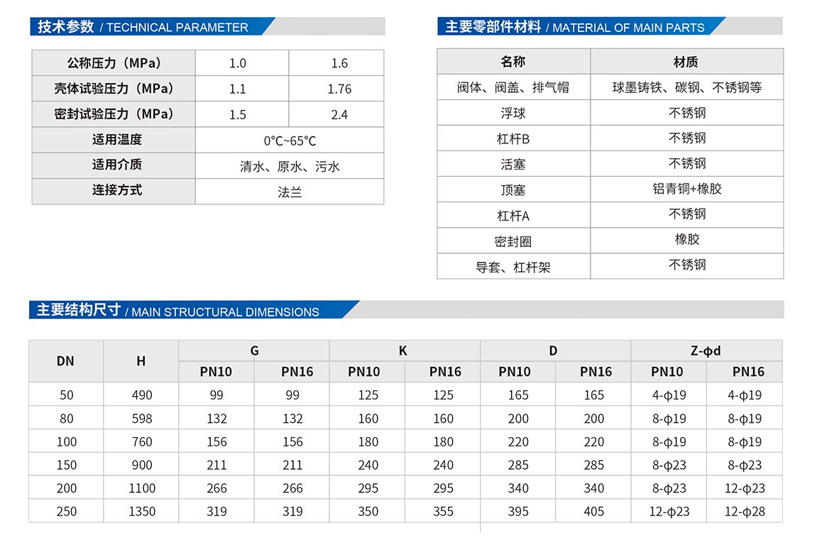 污水復(fù)合式排氣閥將控制部分降低,使污物只在閥體下部,不會(huì)纏繞上部排氣部分各機(jī)構(gòu),不影響排氣,不致漏水。